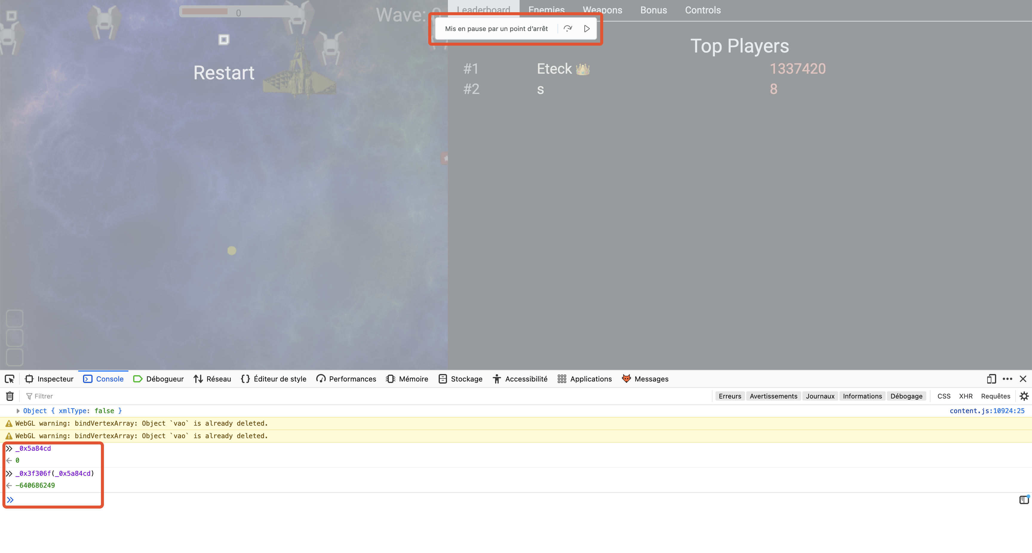 The goal is to beat the score of the pro player Eteck in order to obtain the flag. His score is set to 1337420, which doesn’t seem easy to beat.